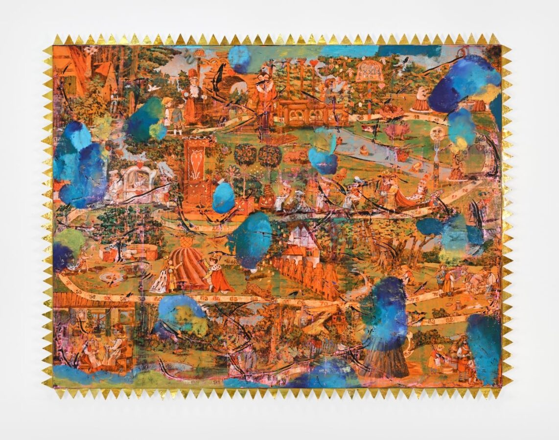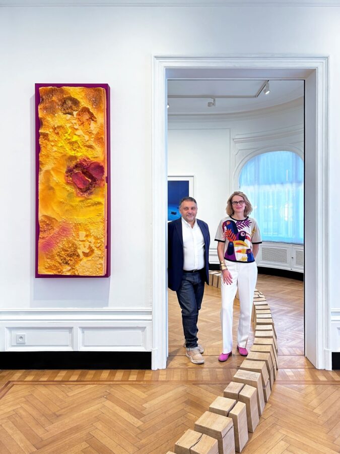 Nous exposerons également des œuvres historiques de Claude Viallat, ainsi qu’une peinture de Julien des Monstiers, jeune artiste-peintre qui a eu une très belle exposition au Château de Chambord en 2024.